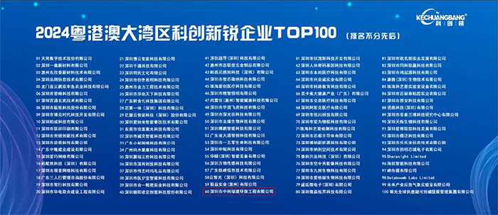 2024粵港澳大灣區科創榜重磅發布,恭喜中科綠建環保成功入選新銳企業TOP100榜單